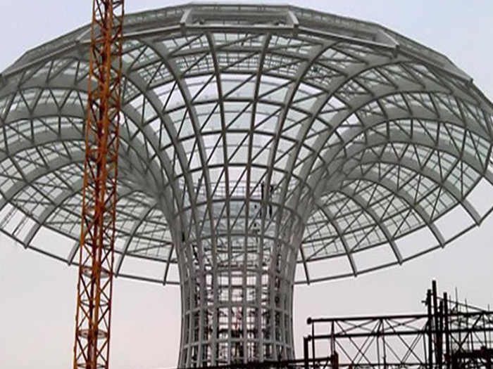二、球形网架结构因其结构新颖,受力合理,自重轻、用钢量低等优点。如大型体育场馆球形柳州螺栓球网架、公共场馆球形网架、电厂柳州螺栓球网架、水泥工业球形网架、仓储物流球形网架、柳州干煤棚工业球形网架、柳州收费站柳州加油站球形网架、展览中心、影剧院、商场、航站楼、候车厅、工厂柳州车间、仓库、电视塔等球形螺栓球节点网架。国内球形网架结构主要分为:柳州焊接球节点网架及螺栓球节点网架两种。螺栓球节点网架其构件工厂内加工量较大,现场安装便捷,适用于现场工期紧,柳州施工条件、用电量受制约,网架形状复杂、柳州杆件定位困难的异形结构。螺栓球节点球形网架系统基本由柳州杆件、螺栓球、支撑支座等组成。按照节点形式可分为交叉柳州桁架体系、四角锥体系、三角锥体系等。支撑方式多为固定支座支撑。对于大面积、大跨度及有特殊受力或伸缩要求的网架结构可采用橡胶支座、滑移支座、球铰支座等支撑形式,以满足结构自身的受力稳定、均衡,便于内力释放等设计要求。